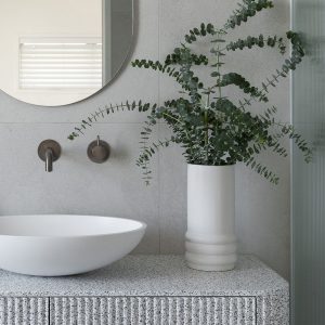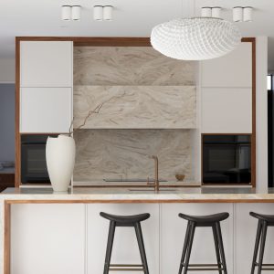 Unlike natural stone or laminate alternatives, Corian® can be cut, shaped and thermoformed into almost any design. This allows for flowing, joint-free installations where benchtops, splashbacks, sinks and wall linings integrate effortlessly into one continuous surface. The result is a refined, contemporary finish that feels architectural and intentional.